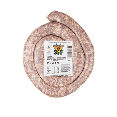 Fred's original flavoured boerewors, a big seller using an original South African recipe the ultimate gourmet beef sausage with a hint of coriander.